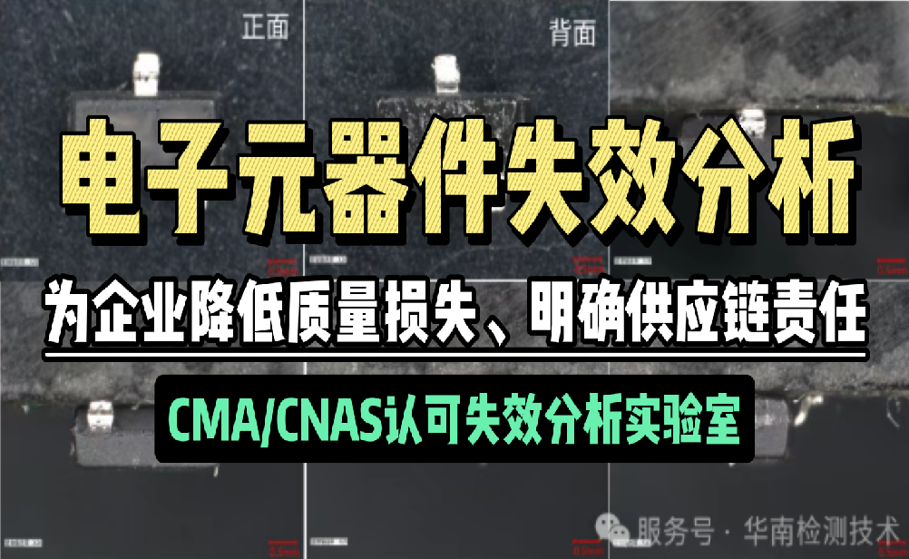 华南检测提供专业的元器件失效分析服务。我们拥有SEM、X-Ray等高端检测设备与CNAS认证资质,精准定位元器件开路、短路等失效根源,出具权威失效分析检测报告,...